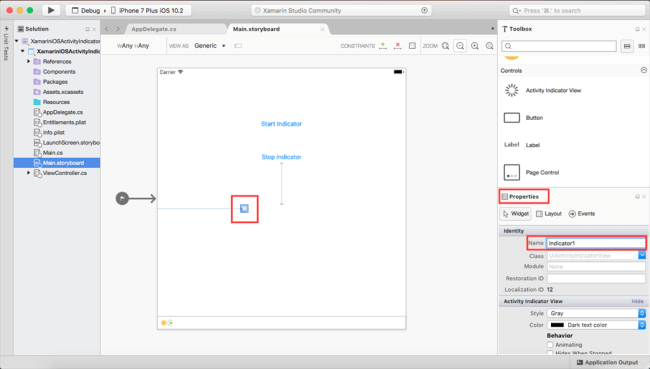 Now, go to the properties Window. Select the Activity Indicator and give a name (Ex:indicator1).