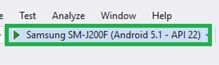 If you have an Android virtual device, run the app on it, else connect your Android phone and run the app on it. Simply, connect your phone and go to Visual Studio. The connected phone will show up in the Run menu (Ex:LENOVO A6020a40(Android 5.1-API 22)). Click the Run option.