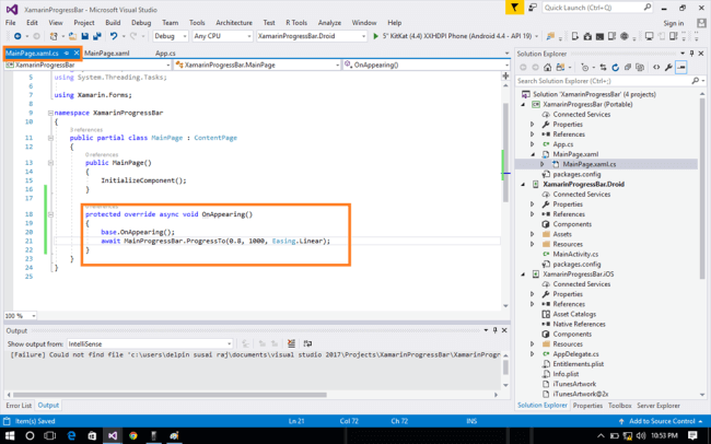 This was the process of how to create a ProgressBar in Xamarin.Forms, using Visual Studio.