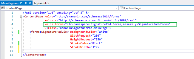 - <forms:SignaturePadView BackgroundColor="White" WidthRequest="250" HeightRequest="350" StrokeColor="Black" StrokeWidth="3" />
