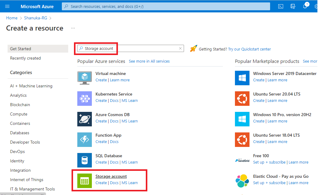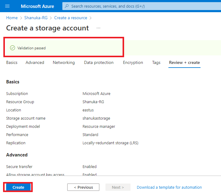 The storage name will be unique. In my case, I have created “shanukastorage”