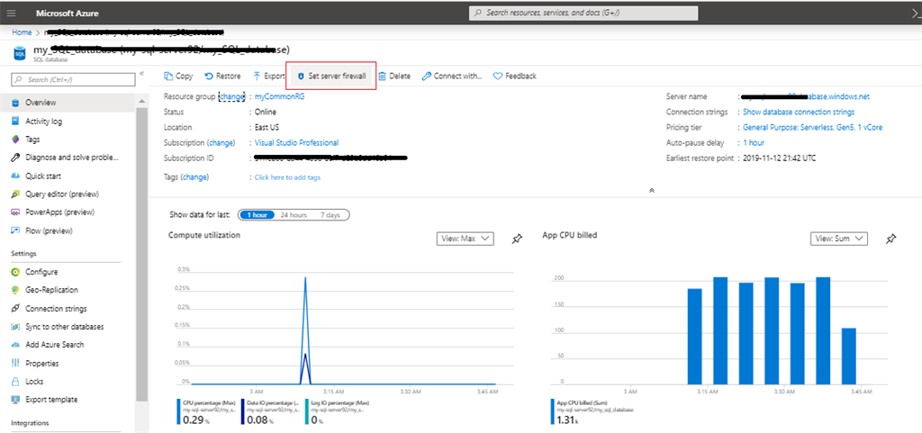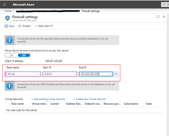 Next, we need to set the server firewall to restrict unauthorized access to the database.