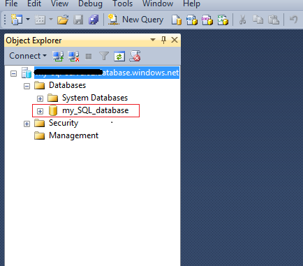 We will be connected to the Azure SQL server. We can see the databases by expanding the databases section.