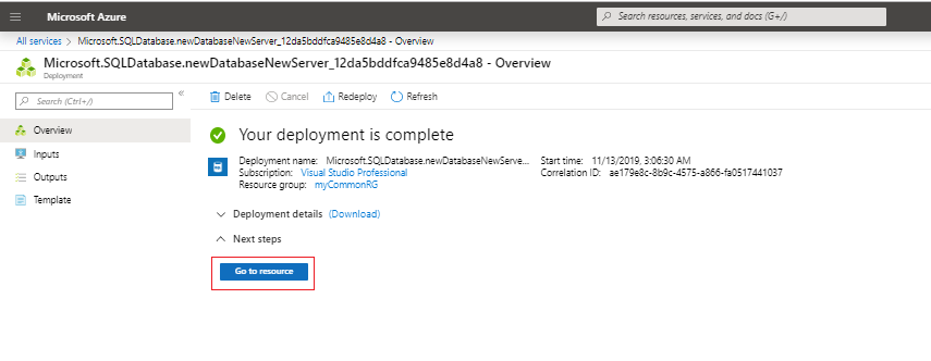 Once the database creation is completed, click the Go to resource button. We will be navigated to our database home screen.