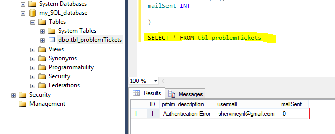 Then, we can execute a SELECT query in SSMS to fetch the records from the table.