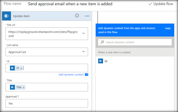 It also updates the SharePoint List item with the Status ‘Approved?’ as ‘Yes’.