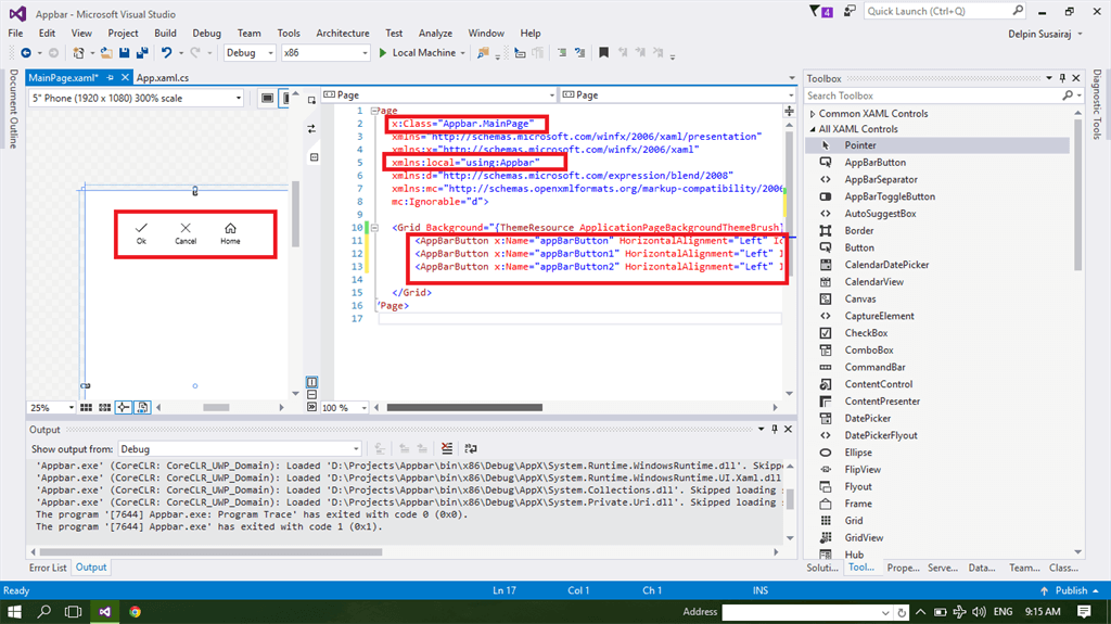 In this article, we learned to create CommandBar control and AppBar control in Windows Universal app, using Visual studio 2015 Update 3.