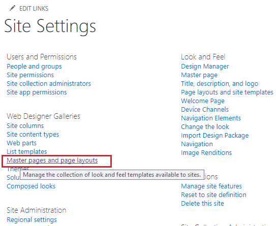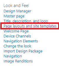 1. Go to Site Setting > Web Designer Gallery >Master Page and Page Layout.