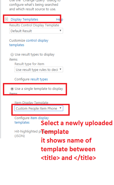 15. Select “Use a single item from a display template” > Select Uploaded Template > Save