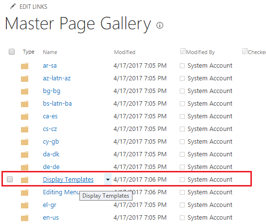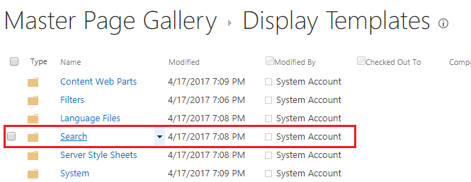 6. Now, upload a modified file in Master Page Gallery>Display Template>Search Folder > Upload.