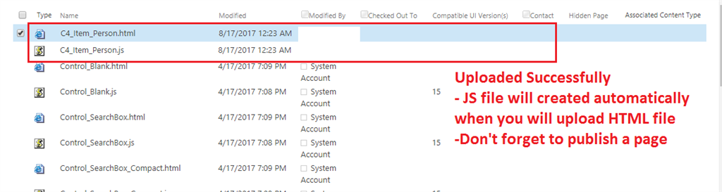 7. It will create a .js file automatically. Don’t forget to publish the page.