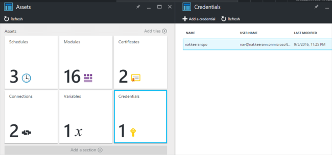 The snapshot, given below, shows the credentials added to the Azure automation portal.