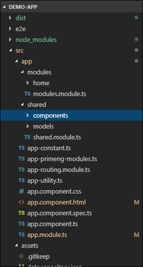 For listing PrimeNG modules, I’ve added a new module named app-primeng.module.ts & added the reference of this to our application main module i.e. in shared.module.ts file.