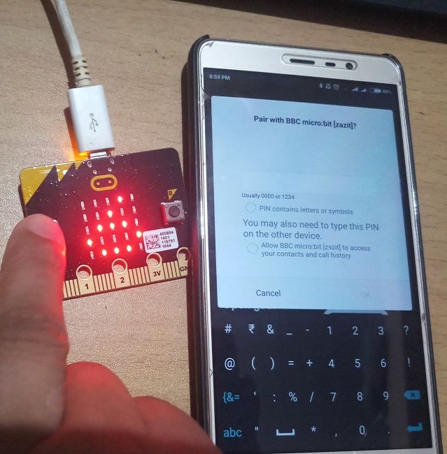 After this, you will see the Bluetooth notification on your phone and pairing codes on your Micro:Bit. You will see Micro:Bit displaying code one by one. So, enter the code on your phone and click on "pair".