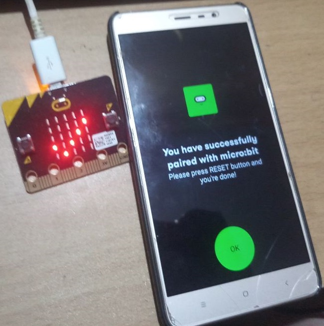 Now, you're done. If both the codes match, you will see the TICK on your Micro:Bit and confirmation on your phone stating - "You have successfully paired with Micro:Bit" or "you have connected your Micro:Bit".