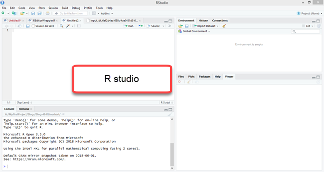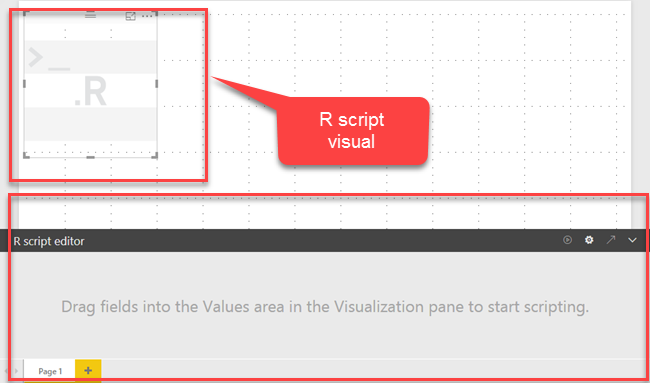 - It will create a blank R-script visual as shown in the following figure.