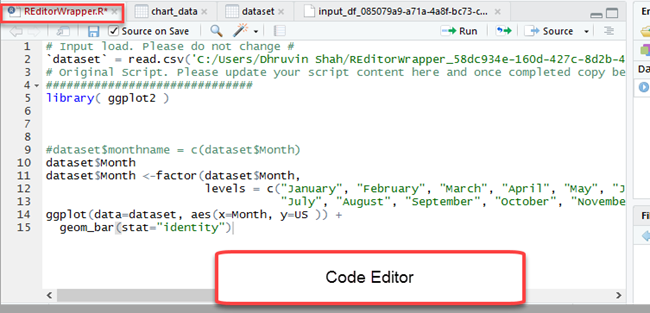 If you observe, it has created some auto-generated code in the script editor. Now, we will open the same code in R Studio.