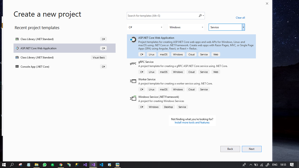 Add a new project of type "Class Library (.NET Standard)" and click on "Next".