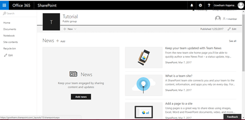 You can keep your team in the loop as well as engage them with important or interesting stories by using the News feature on your Group team site. You can quickly create eye-catching posts like announcements, people news, status updates, and more that can include graphics and rich formatting.