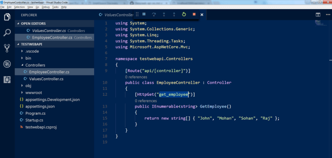 Press F5 for building and running the application. Now, open the browser and type the following URL.