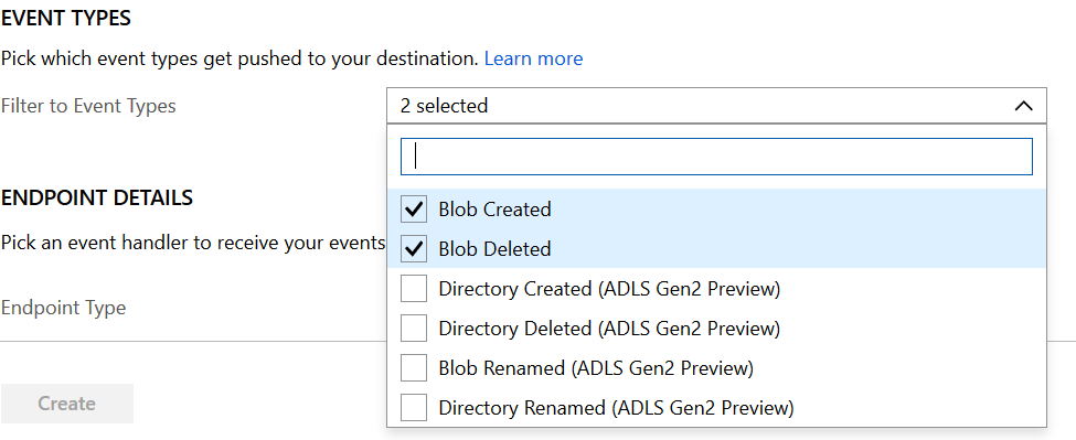 Now comes the "ENDPOINT DETAILS" section to choose based on our target function app created above. Endpoint type is "Webhook" and I have selected my target function app URL as the endpoint URL.