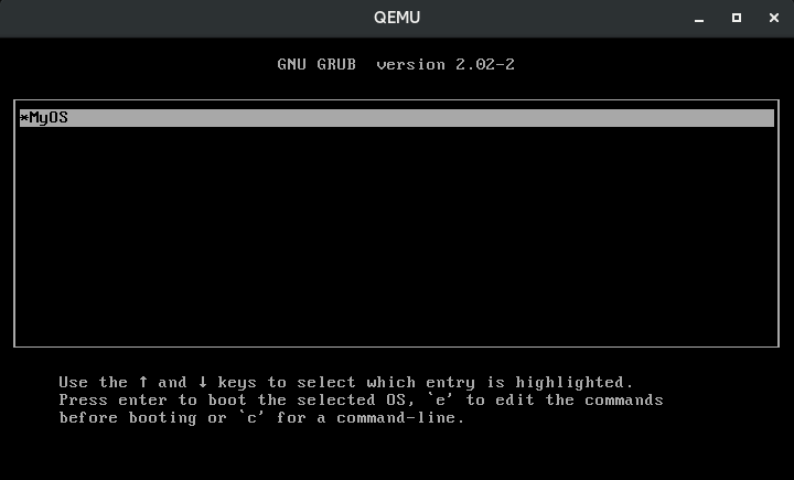 - cp MyOS.bin isodir/boot/MyOS.bin