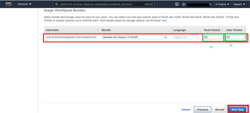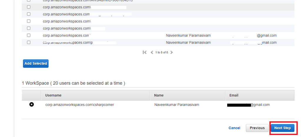 AWS has created a default directory. I selected Amazon workspaces default directory and clicked “Next Step” Button.