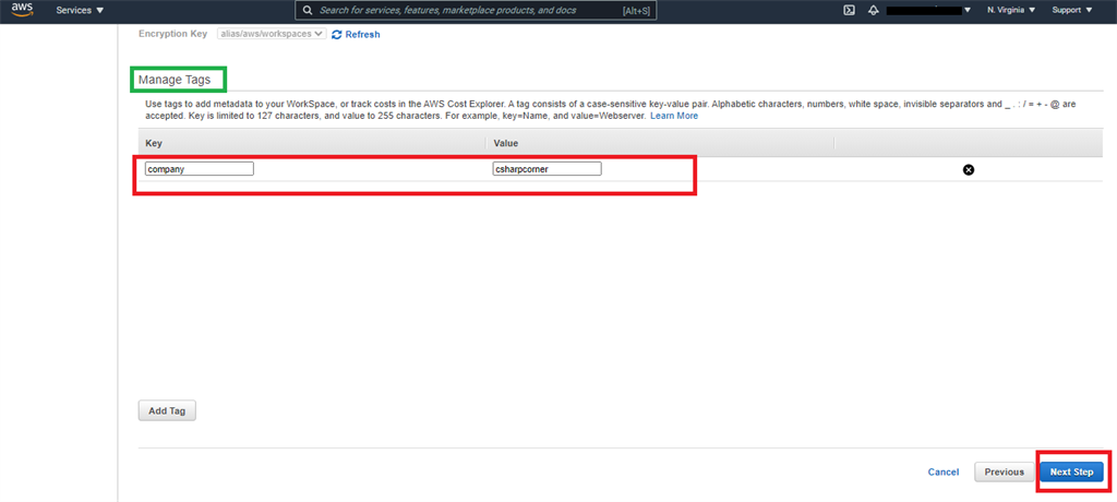 Get a tag key & value in the field and click the “Next Step” button.