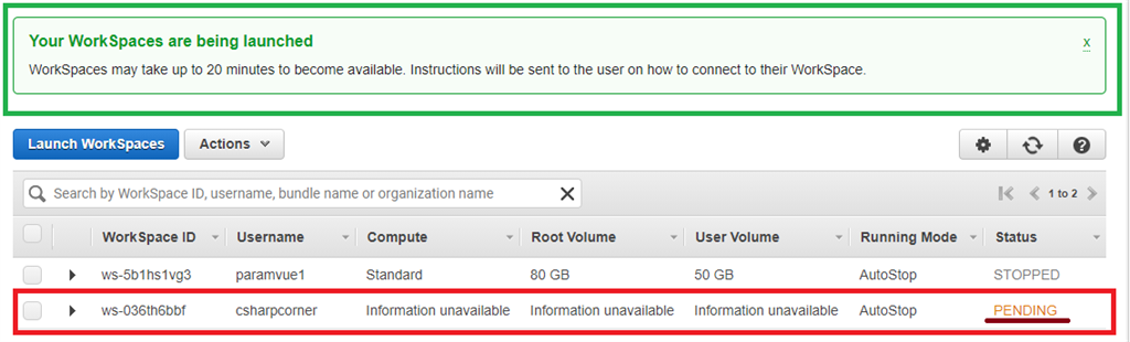 Our new workspace is launched successfully and status should be “PENDING”. Just wait for 30 minutes, our VM login password setting link sent to your given Email id.