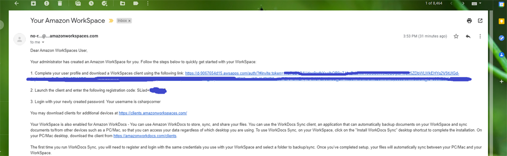 Finally, I received an email from AWS workspace for setting password for created Desktop VM.