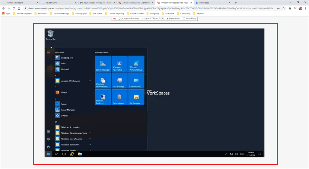 We successfully connected our Workspaces VM through a web browser.