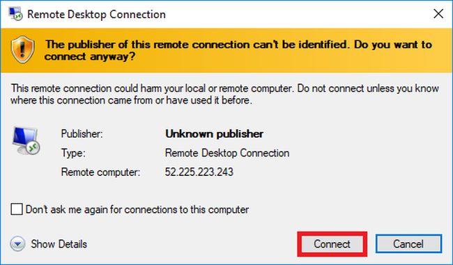 Click to open the file. Press Connect to make the connection between our DSVM to the local machine.