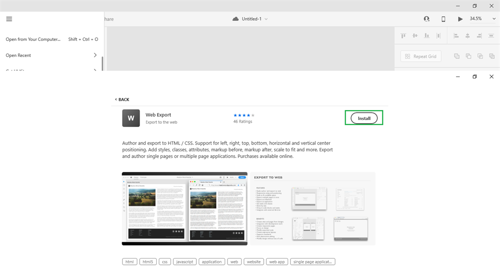 You are normally able to design the layout and buttons for the web, but for exporting that design into an html page you need to install a plug-in called Web export for that purpose. Then you can export the artboard into a webpage.