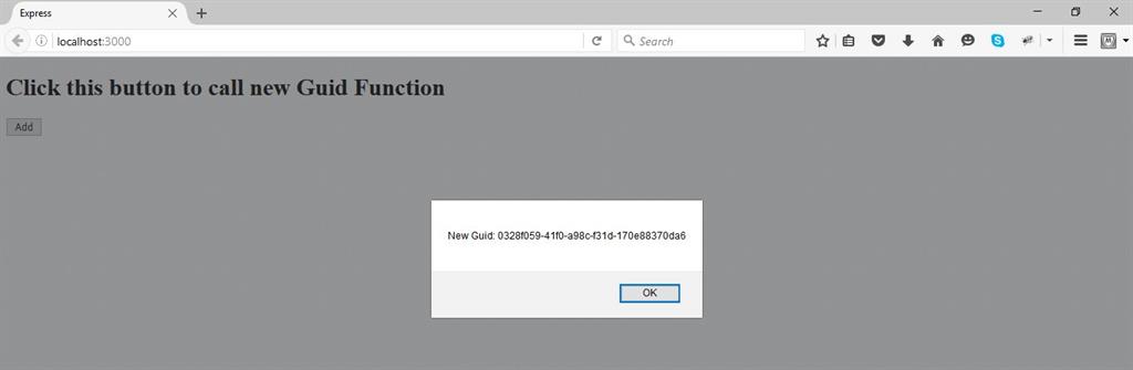 Please note the add() function which calls a function Guid.newGuid() which creates a new guid value and displays it as alert.