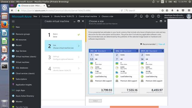 Size Blade Choose the size of the Virtual Machine that you need now and click on Select in Size blade. Settings Blade In settings blade you can find the following options will be configured automatically.