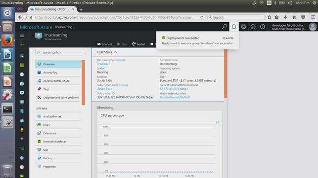 Just Click on OK now. Summary Blade Once after the validation is passed in the Summary Blade click on OK to create the Linux Virtual Machine. And now you can find the deployment going on for your virtual machine of Linux. Note Look in the below screen a tile of “Submitting Deployment for Ubuntu Server 16.04 LTS”. Yes!! Here goes your Linuxlearning Virtual Machine now. Connecting towards Ubuntu Server 16.04 LTS Virtual Machine. Click on Connect in the VM that we have created. You will be getting a command as ssh [email protected], use this command to connect towards the Virtual Machine. You should have a SSH client and server component to get connected. Follow the below steps to install it.