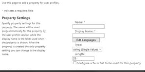 Specify property settings for this property: The name will be used programmatically for the property by the user profile service, while the display name is the label used when the property is shown.