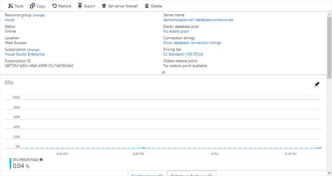 Step 6Finally, the configuration of the SQL Database is shown in the "SQL Database" blade. Just press "Create".