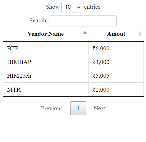 In the above code I am fetching details from the vendor entity and grouping data based on the name as well as checking condition to render records where amount is >0 and name is not null to avoid and error in data table rendering. Once we get the result we can pass our fields to the data table column like above. Finally we need to make call to this method. Here is the full code of the html web resource.