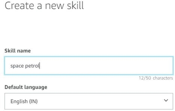To create a new skill, first, we need to login into the Alexa developer console, we need to mention the unique skill name and select the default language according to our location.
