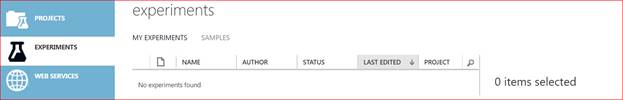 Projects helps us with listing whatever projects are available. This organizes the collection of experiments, Web Services, data sets and the trained models. The same experiments can also be used for other projects.