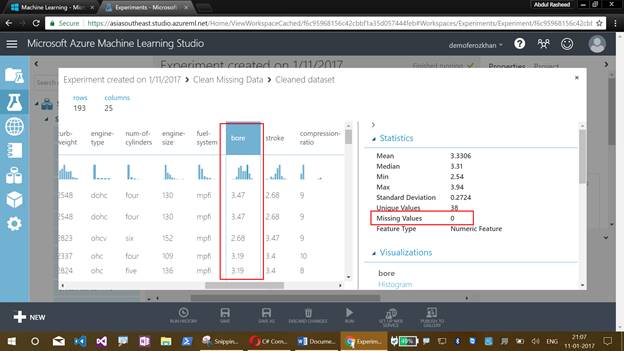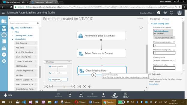 I have discussed about the Machine Learning Studio, their menus, creating an experiment, working with sample datasets, refining with the missing values and getting clean data for training the model.