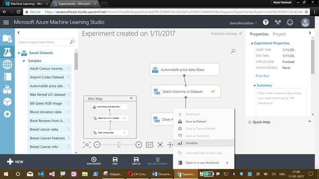 This article is a continuation of my previous series of articles and here we will be discussing about Azure Machine Learning Studio. We will create an experiment, and we will be discussing more with the sample datasets and other Workflows of the experiment.