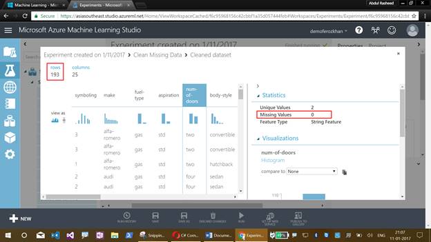 We still have missing values available for the number of doors as 2. To remove this, we will be using Cleaning Missing Data Model.