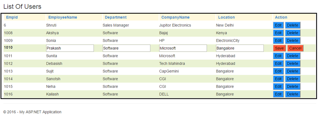 So, this way, we can do CRUD operation in WebGrid by consuming the API.