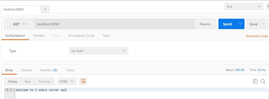 Let's run the application and view the output in Postman App. You can also see the same in a browser: