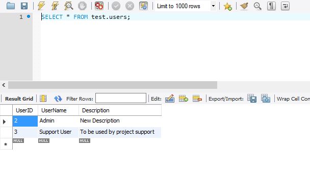 Step 5: Let's have a look on what data is there currently, in our table : users: