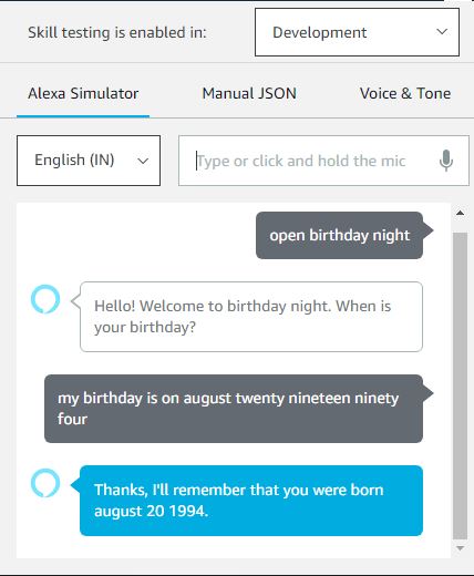 If user fails to mention valid month name while making a request to Alexa to store a user’s birthdate then Alexa will throw an error message and ask the user to provide a valid month name.