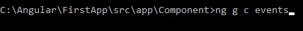 First, add one component called events. Go to the "Component" folder and type cmd. Then, hit enter.