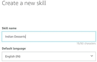 To create a new skill, first, we need to login into the Alexa developer console, we need to mention the unique skill name and select the default language according to our location.